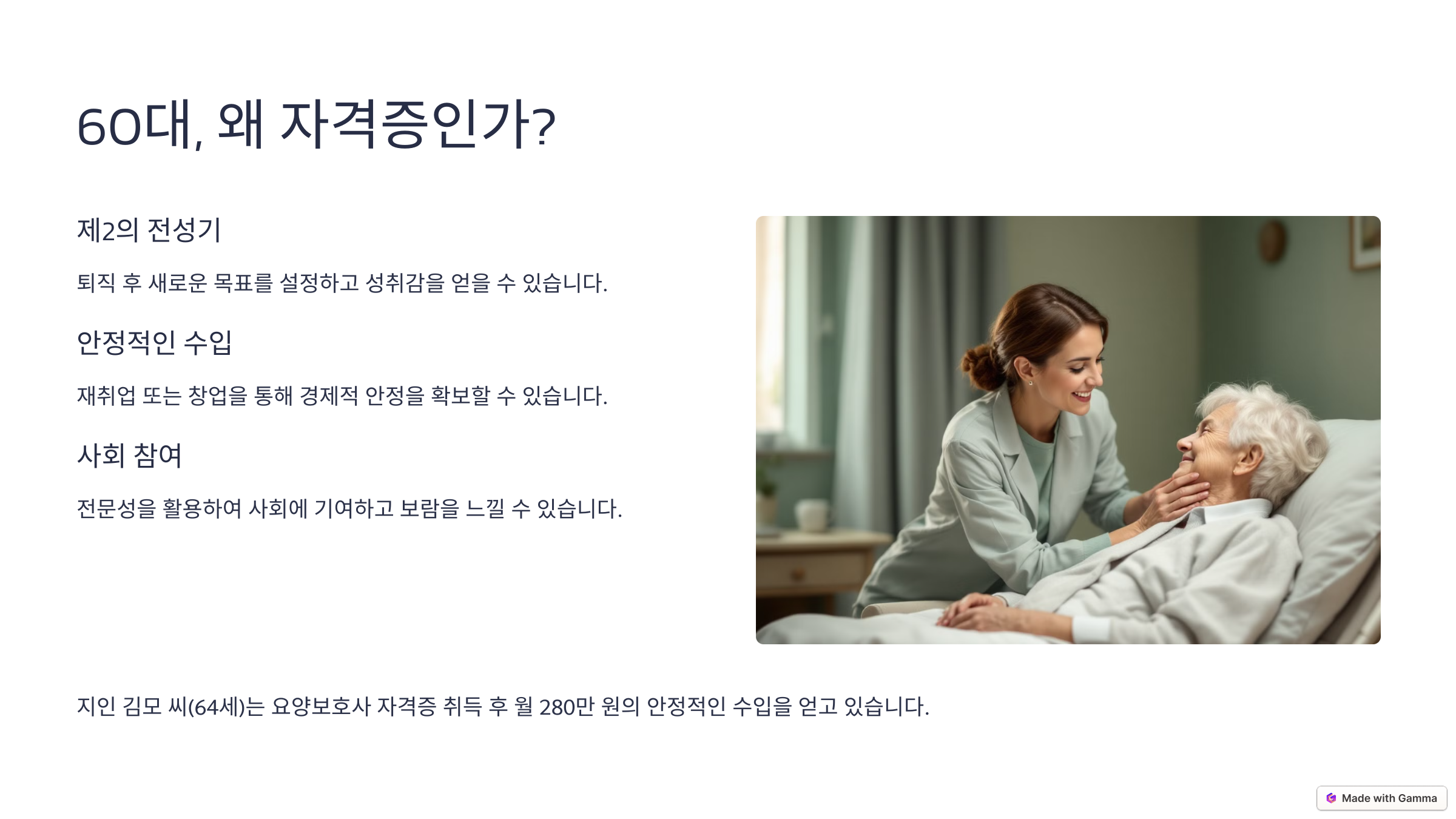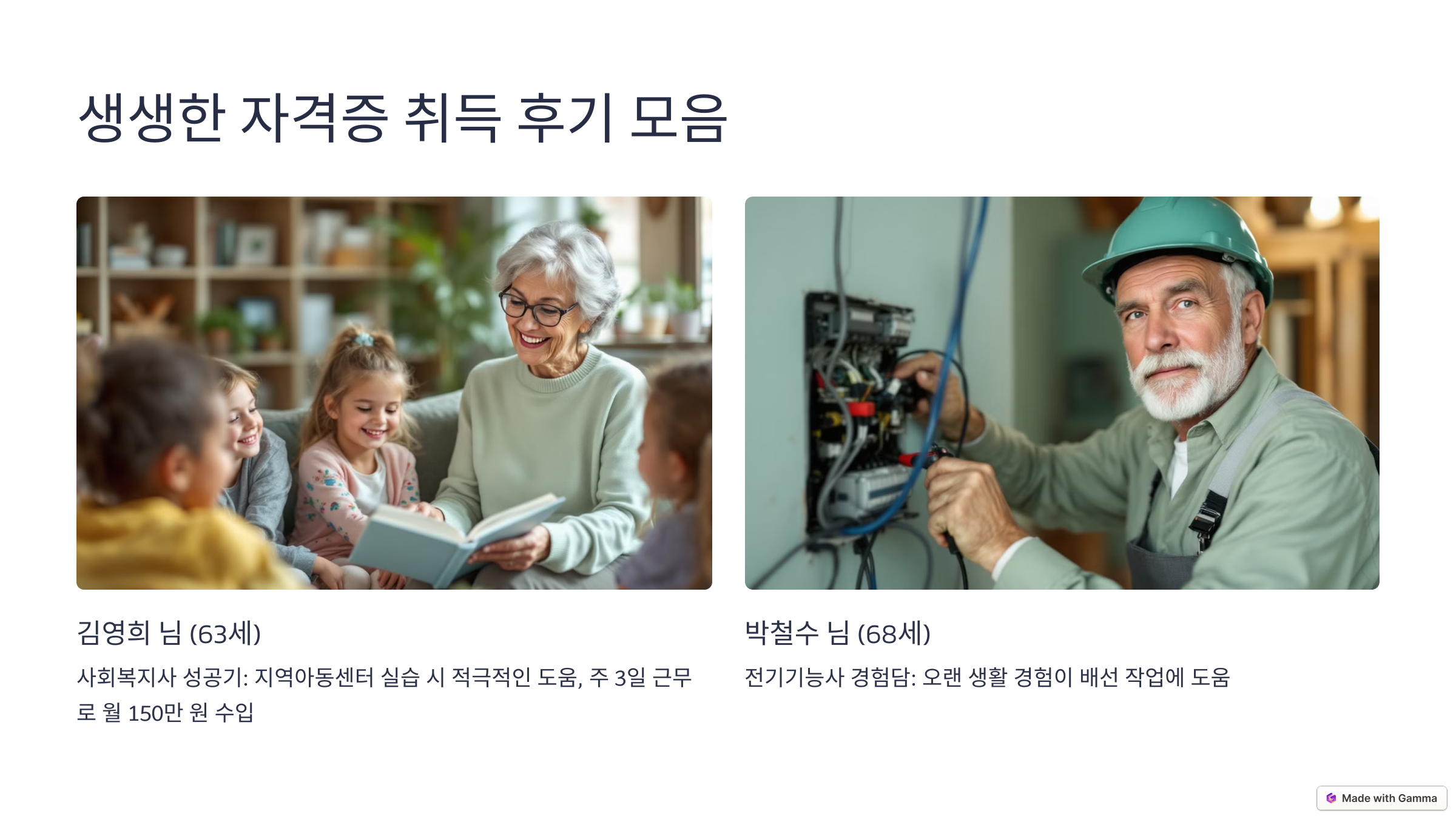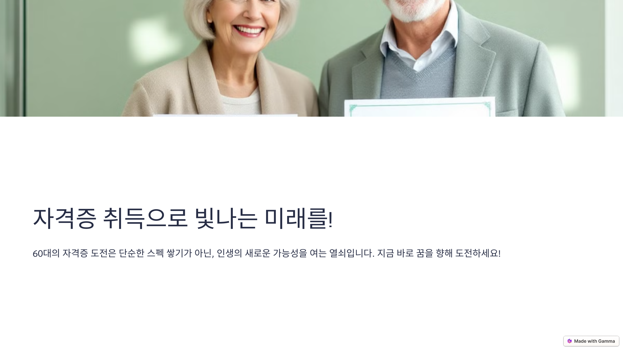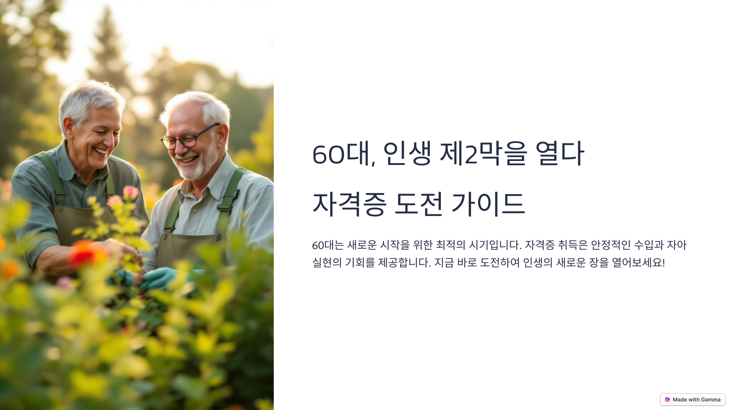 60대는 인생 제2의 전성기입니다! 2024년 한국산업인력공단 통계에 따르면 60대 이상의 자격증 취득자가 전년 대비 23% 증가했는데요. 사회복지사, 요양보호사, 전기기사 등 60대 유망 자격증으로 새로운 삶을 시작한 사례부터 합리적인 준비 방법까지, 지금 바로 확인해보세요!