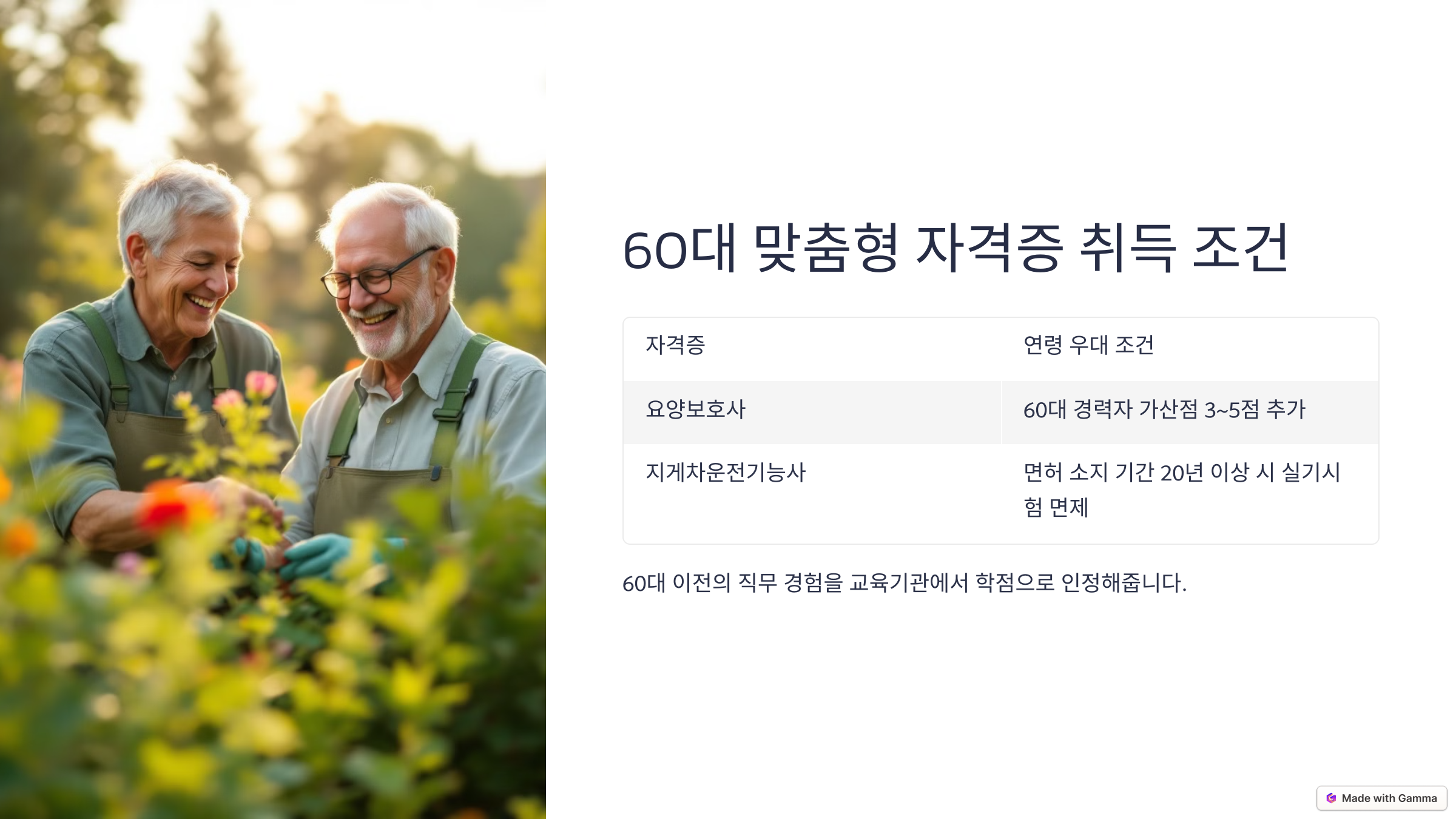 60대 맞춤형 자격증 취득 조건
